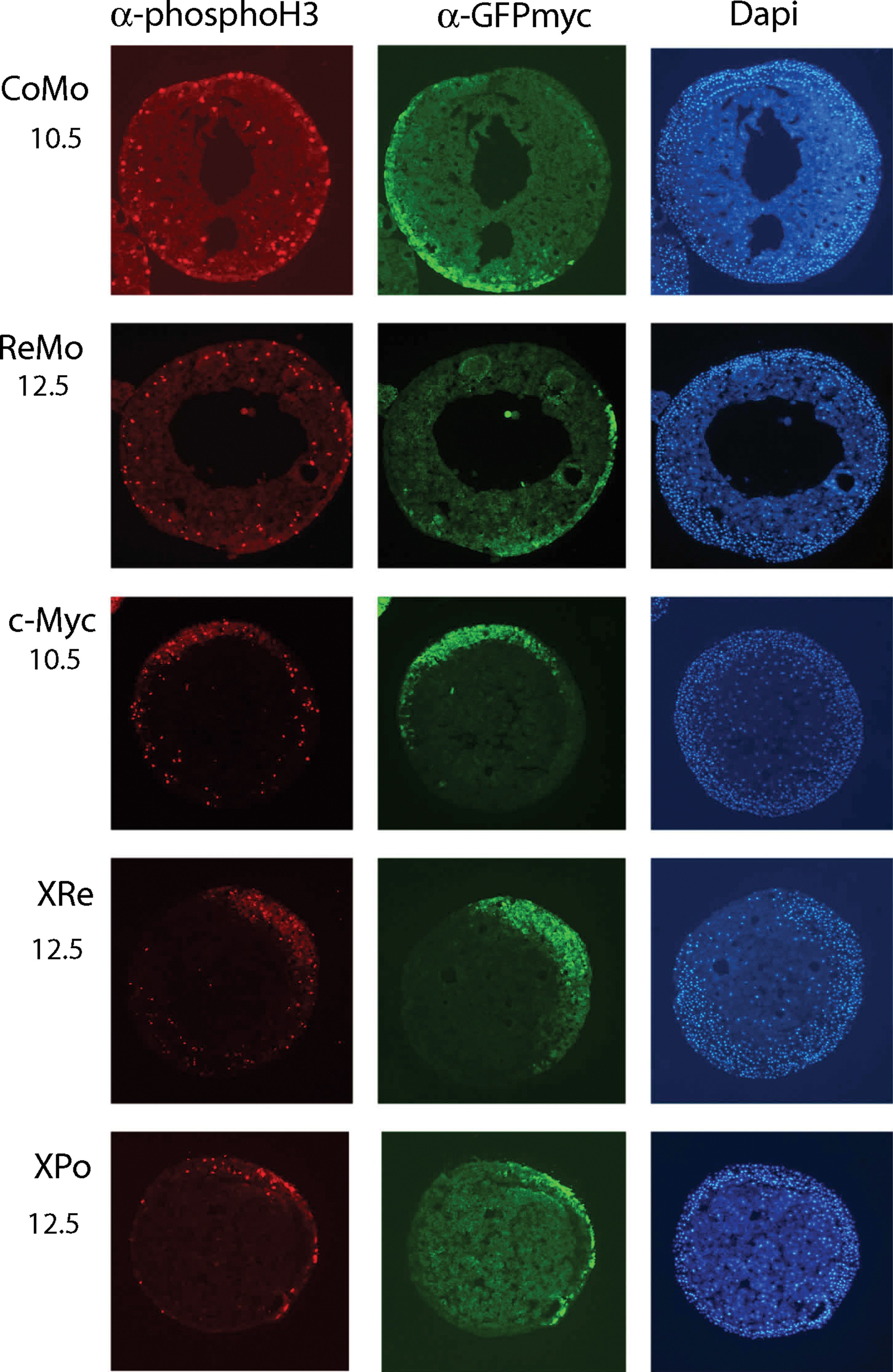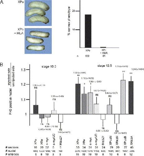the phosphohistone H3 antibody (PH3). Embryos were unilaterally co-injected with GFP mRNA and the indicated