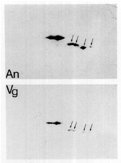 of animal (An) or vegetally (Vg) injected oocytes reveals the same pattern