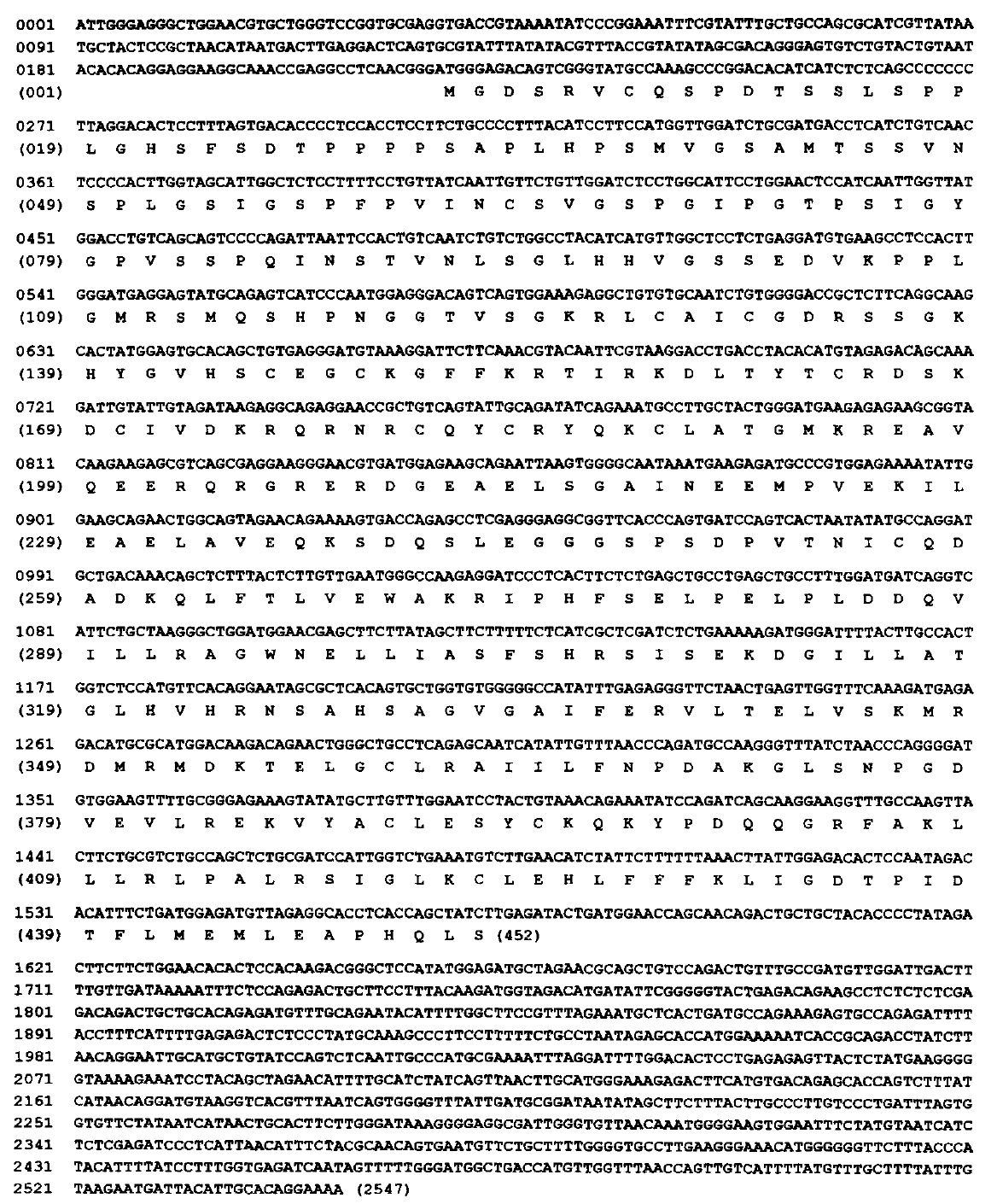 Fig. 1. Nucleotide sequence, and putative amino acid sequence of xRXRfl, xRXR~ cDNA was isolated as a single EcoRI fragment, the