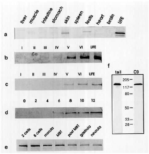 FIG. 2. Eg5 protein in Xenupu.~ oocytes, eggs, embryos, and adult