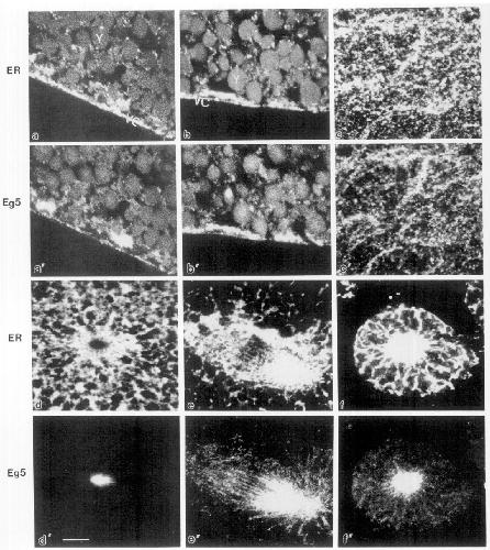 blastula cell. (f) Section of an interphase blastula cell. There is partial colocalization of Eg5 and ER around the microtubules of the vegetal