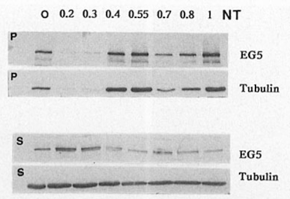 tubulin pellets (P, 3.5 egg equivalents per lane) and cytoplasmic