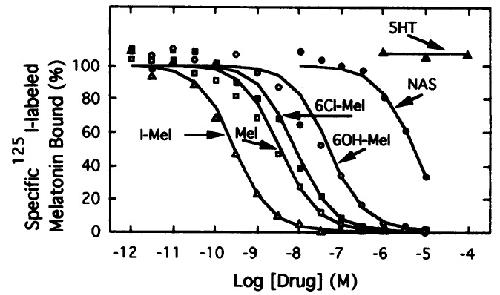10-9 M; 60H-Mel, 2.0 x 10-8 M; NAS, 2.0 x 10-6 M; 5HT, >1.0