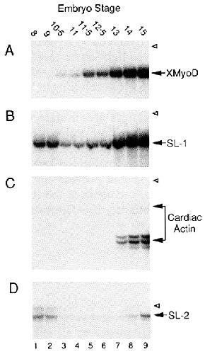 Figure 1. Sequential expression of XmyoD and the RSRF genes