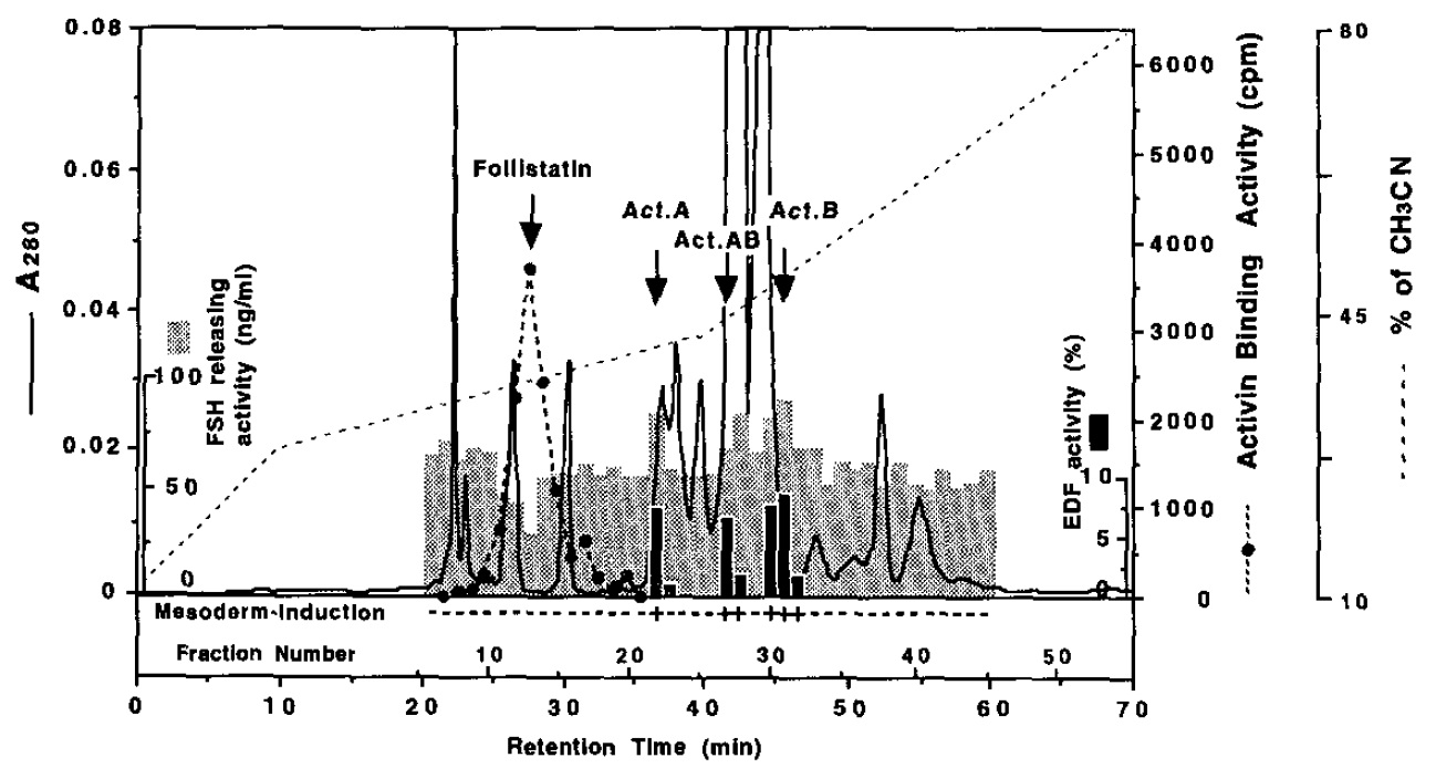Identification of activins A, AB, and B and follistatin proteins in Xenopus embryos.