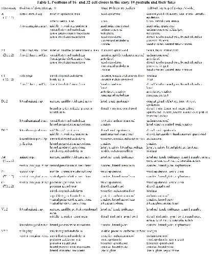 Table 1. Positions of 16- and 32-cell clones in the stage 10 gastrula and their fates