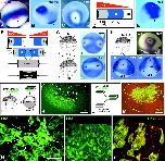 Figure 1. A-E: Expression profiles of mesodermal genes in the vicinity of endogenous and experimentally induced bottle cells. A: Expression of Xenopus brachyury (Xbra, blue) and chordin (chd, magenta) in early gastrulae. chd transcripts indicate the organizer region, which fits into the gap between the dorsal bottle cells (arrow) and the Xbra-positive mesodermal ring. B-E: Microinjection of activin mRNA causes the formation of an ectopic bottle cell field in the animal cap and the expression of chd (B), Xbra (C), and gsc (E) in characteristic spatial relationships to the ectopic bottle cells (schematically illustrated in D). Note the ldquo bridge rdquo of gsc-positive cells between the endogenous organizer and the ectopic gsc domain in E. F-H: Shifts of expression domains in regions of overlapping gradients of activin. F: Schematic drawing illustrating the theoretically postulated shifts of the domains I-III caused by different degrees of overlap of two signal gradients. A peripheral overlap leads to the formation of an additional domain II (1), a more extensive overlap to the expansion of domain I (2), and to the fusion of two bottle cell fields in the outer epithelium (3). G: Double-injections of activin mRNA into animal blastomeres of stage 6-6.5 embryos were performed at different distances. G1,2: Two complete Xbra-rings are formed. In the center of the animal cap, the two rings are fused. G3,4: Less distance between the injection sites causes the formation of a uniform Xbra-negative region encompassing both bottle cell fields. This region (corresponding now to region I) is surrounded by a single Xbra ldquo ring. rdquo The two bottle cell fields become fused under these conditions. H: Single injections at decreasing distances to the marginal zone (1). H2: At a distance, the ectopic Xbra domain forms a complete ring. The periphery of this ring (region III) fuses with the periphery of the endogenous Xbra ring (arrowheads) to form a Xbra-positive bridge. H3,4: More pronounced overlaps of endogenous and ectopic signal gradients cause partial (3) or complete (4) reduction of the endogenous Xbra expression, eventually causing an Omega-like Xbra pattern (4, compare with E). Arrowheads indicate the endogenous expression sites, and asterisks indicate the ectopic bottle cell fields, which sometimes can also be recognized by the accumulated brown pigment (C,G2,G4). I-M: Cell movements in embryos overexpressing activin in the animal cap. I: Activin mRNA was coinjected with fluorescein-dextran-amine (FDA), and animal caps were explanted at stage 8. K-M: They were cultured either alone (K) or in combination with an uninjected cap (L,M, the border between the two caps is roughly indicated by the dashed yellow line). At stage 10.5, they were fixed, embedded in plastic, and sectioned. FDA-positive epithelial cells undergo apical constriction (indicated by the curved arrows in K and M), and the stained cells underneath form a coherent mass. Arrowheads in K indicate some FDA-negative bottle cells (identified by their accumulated pigment) directly adjacent to the FDA-positive cell mass. M: In conjugates, only the injected cap forms bottle cells. N-P: Similar activin-induced distribution patterns of labeled cells appear in undissected embryos. N: Tangential section through an ectopic bottle cell field. Arrows indicate the bottle cell field at the center of the image; the asterisk indicates a region of constricted but FDA-negative cells. O,P: Cross-sections through bottle cells at the center (O) or at the periphery (P) of an ectopic bottle cell field. Note the FDA-negative bottle cells in P where cell borders were visualized with an antibody against beta -catenin. Scale bars = 100 mu m in K,M, 50 mu m in N-P. |