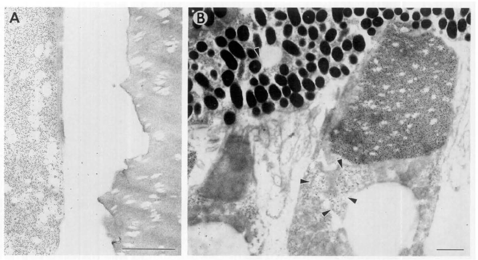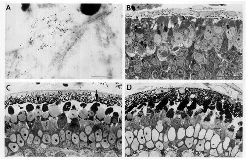immunolabeling located in the apical portion of the inner segment of the stage 41 embryo retina (arrows) Scale bar, lJtm.