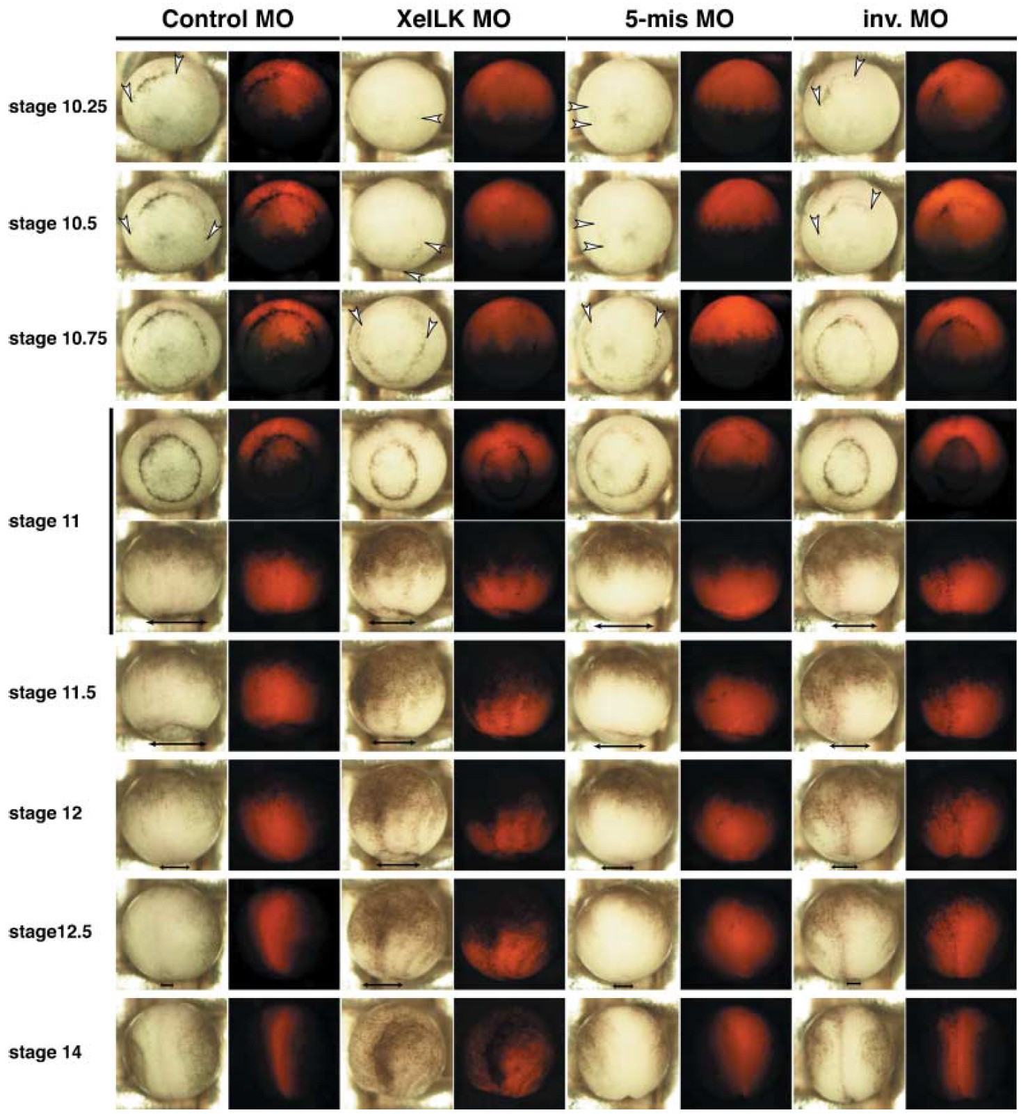 mRNA, vegetal view; XeILK MO). Arrowheads indicate the