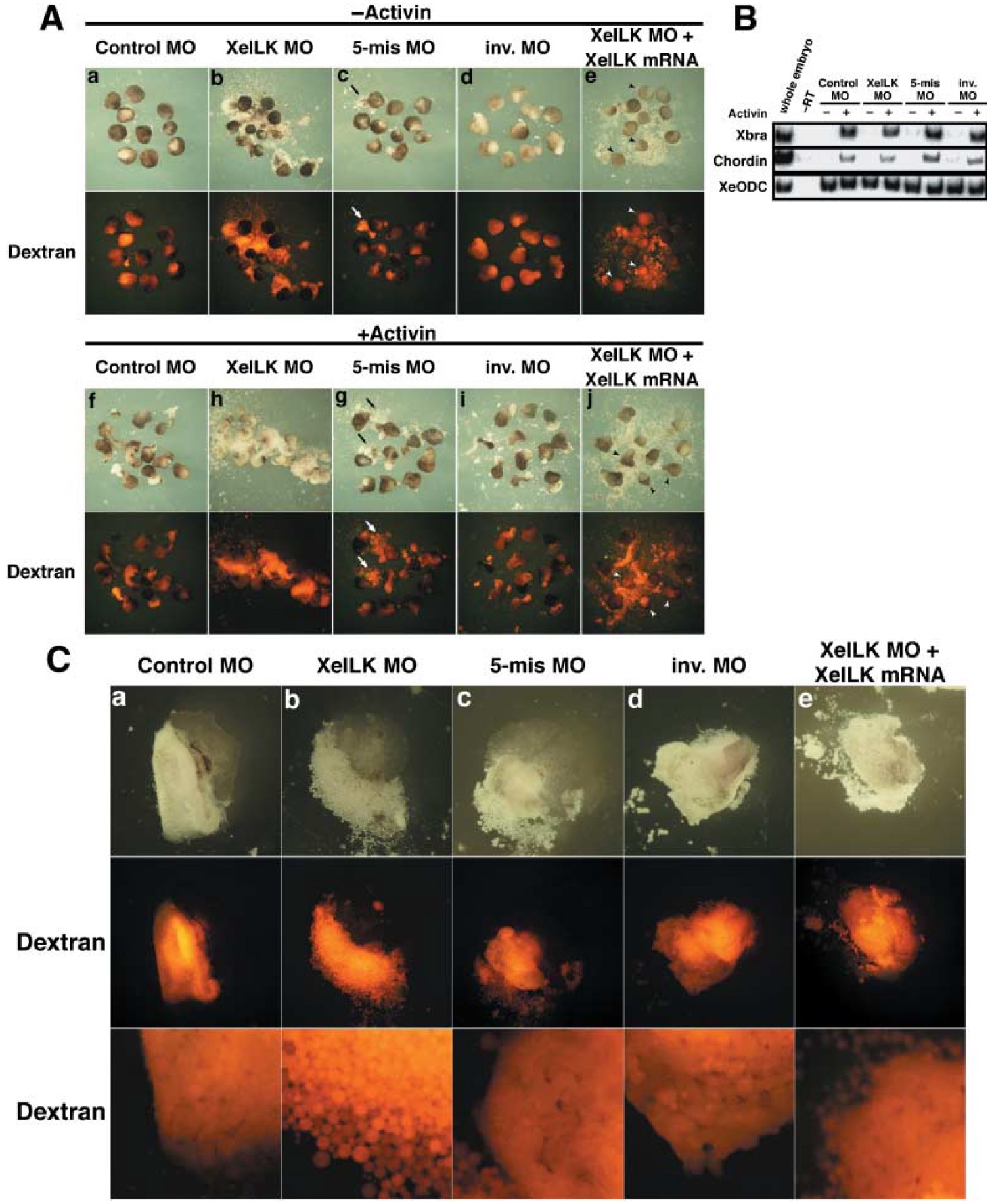 (0.5 ng) was co-injected with XeILK MO. Rhodamine-dextran