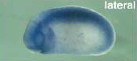 ilk (integrin-linked kinase) gene expression in Xenopus laevis embryo, assayed via in situ hybridization, NF stage 25, lateral view, anteriorleft, dorsal up.