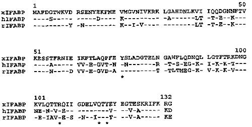 different from frog (xiF ABP) are shown for human (hlFABP; Sweetser et aL, 1987) or rat (rlF ABP; Alpers et al., 1984:). Note that the