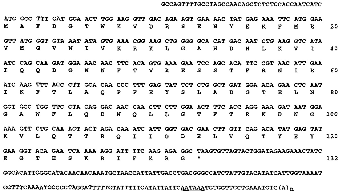encodes 132 amino acids, followed by a stop codon, and a 3'-untranslated region; the putative polyadenylation signal is underlined.
