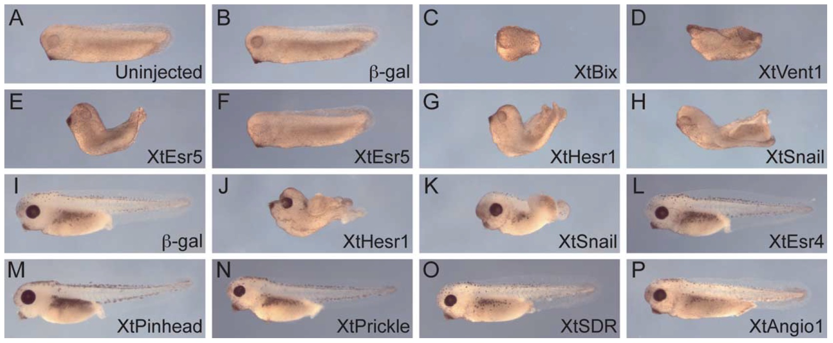 development): 29/30; (J) XtHesr1: 19/19; (K) XtSnail: 17/26; (L) XtEsr4: 26/27; (M) XtPinhead: 28/29; (N) XtPrickle: 29/29; (O) XtSDR: 22/26; (P) XtAngio1: