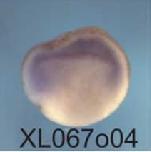 rpl24 (ribosomal protein L24) gene expression in bissected Xenopus laevis embryo, assayed via in situ hybridization, NF stage 10, horizontal view, animal up, dorsal right. |