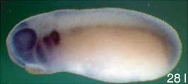 ccndx (cyclin Dx) gene expression in Xenopus tropicalis embryos, NF stage 30, as assayed by in situ hybridization. Lateral view: Anterior left, dorsal up. |