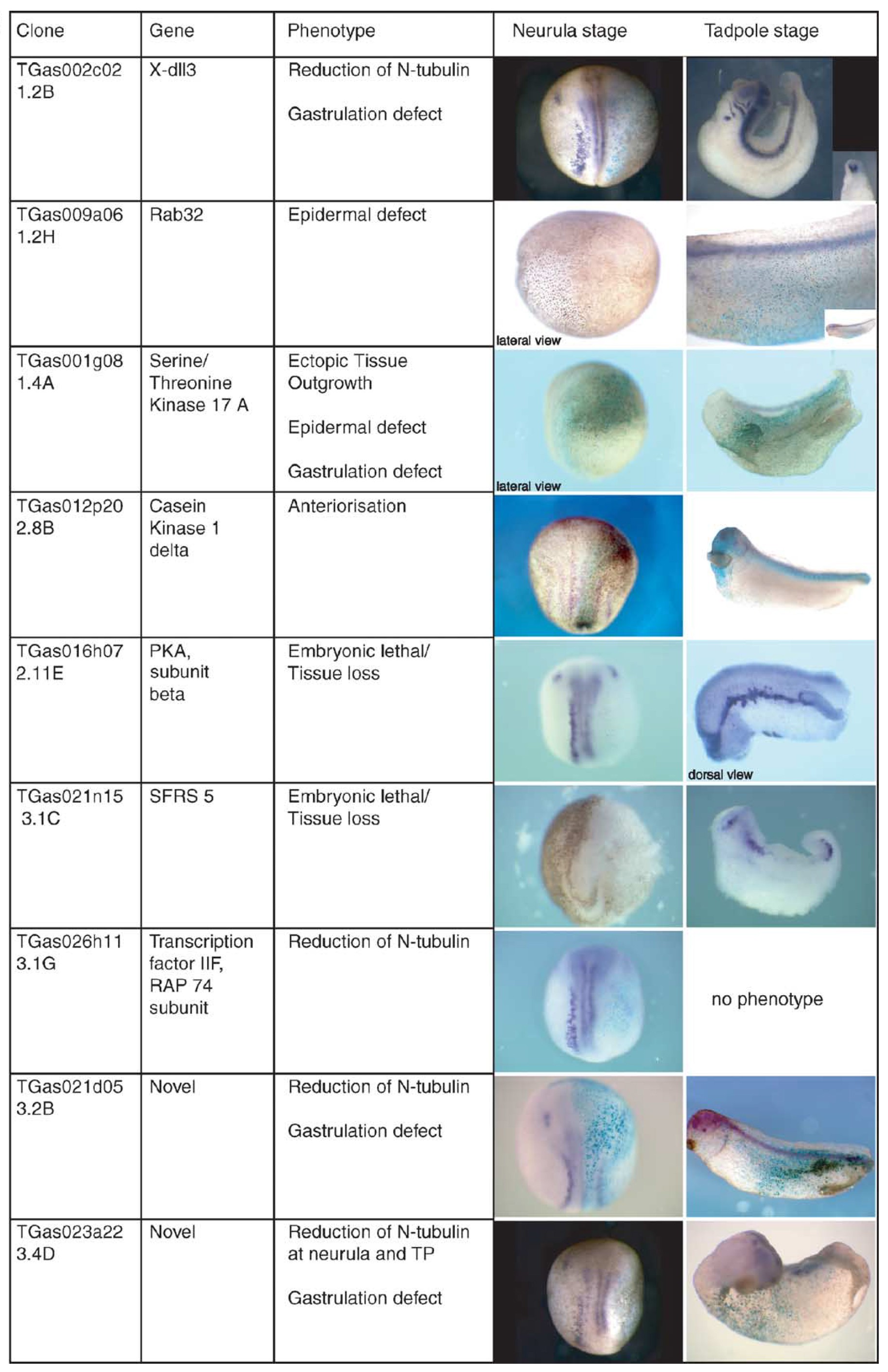 Fig. 3. Overexpression phenotypes of the single clones identified in the screen. (aCb) Approximately 400 pg in vitro transcribed RNA together with 200 pg