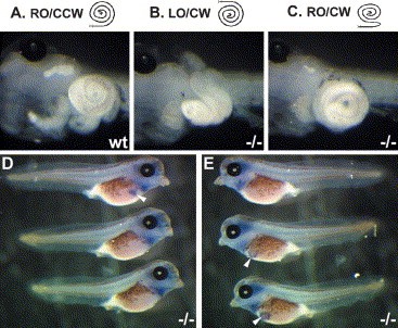 mutant tadpole in (C) exhibits a right coil origin (RO) for the gut. Both