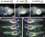 Fig. 7. Rough Diamond. (A) A wild-type tadpole displaying two distinct otoliths, the saccular and utricular otoliths, within the otic vesicle (arrows). (C) Top