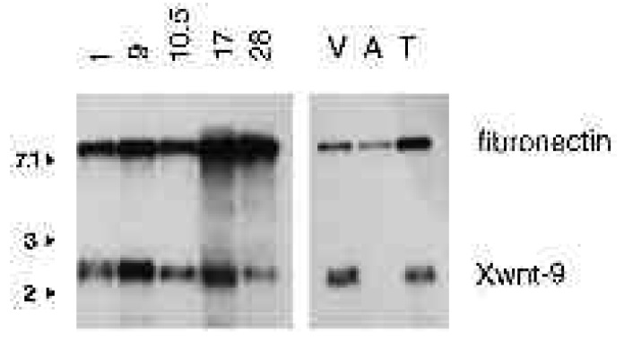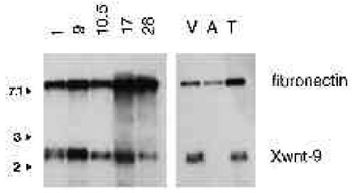 RNA. Northern blot probed with Xwnt-11 and with fibronectin as
