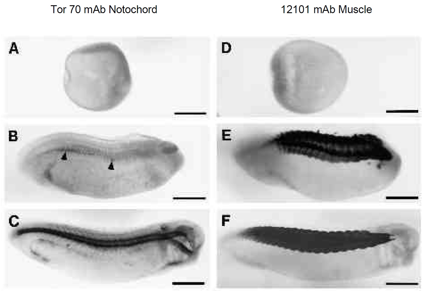 antibody 12101 (Kintner and Brockes, 1984). (A) UV-ventralized embryo plus Tor 70 mAb. There are no Tor 70-positive cells. (B) UV