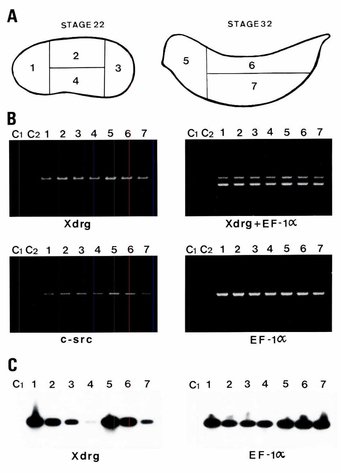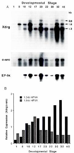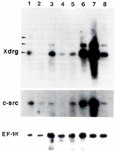 hybndlzed to Xdrg, c-src and EF-7a probes respectively. The exposure