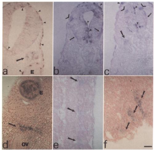transverse section (a). e, The region surrounding the myotomal junctions has XShal staining. Anterior is toward the bott0m.f; The gill (branchial)