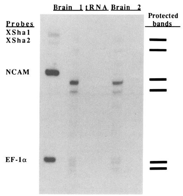 The resultsf or two different brain RNA preparationsa re shown.A