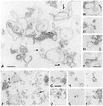 and F) designate vesicles labeled with gold particles. Higher magnification images of antibody X223-1abeled vesicles (B-E) and 46FTlabeled