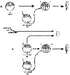 hatched arrows, transfer of cytoplasm.