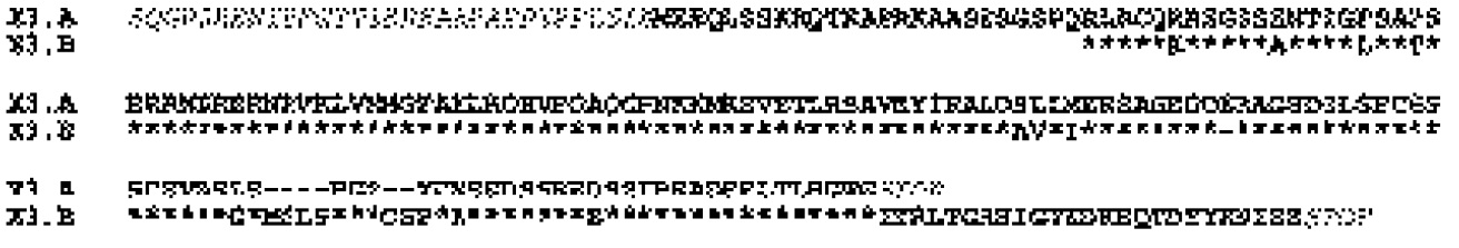 Fig. 2. Deduced protein coding sequence of X3.A and X3.B cDNA clones. Residues upstream of the first methionine in the X3.A protein