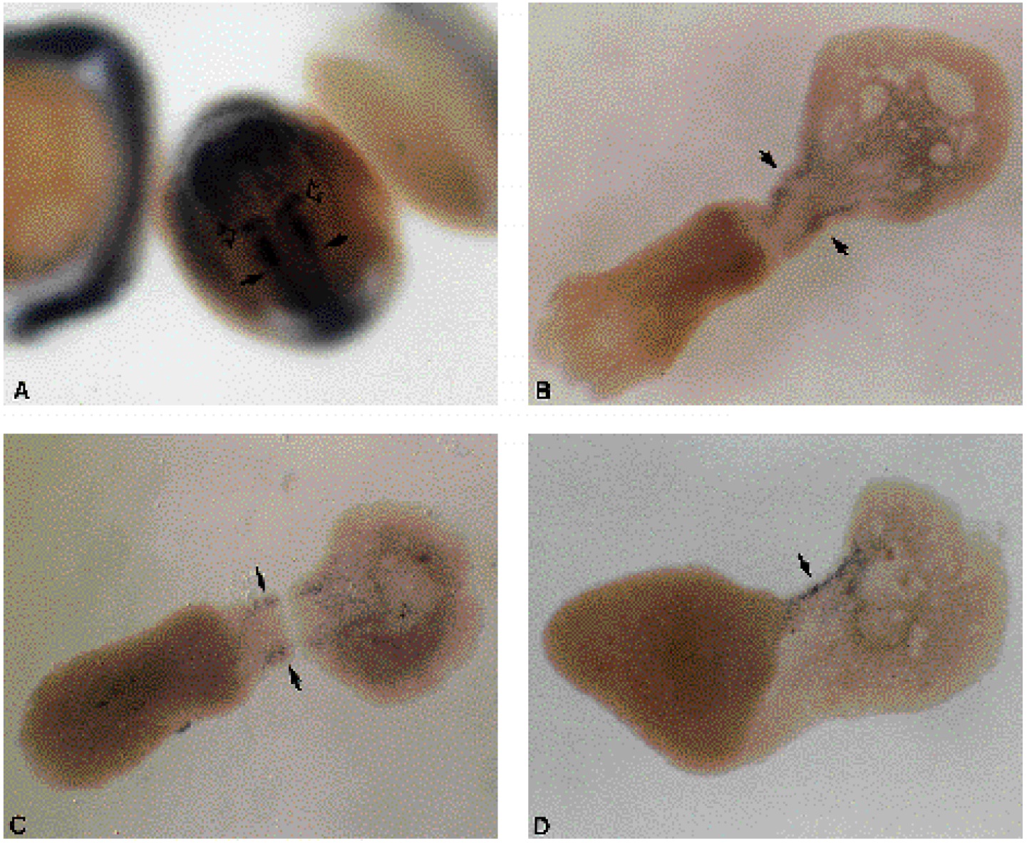 intact embryo (see A) are shown relative to the site of excision