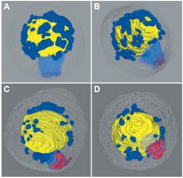 Fig. 4. Three-dimensional reconstructions of stage II oocytes hybridized