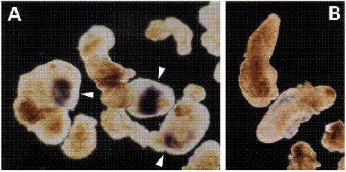 fused aggregates of explants (A) which were dissected from pigmented embryos. No signal was detected in explants that failed to fuse,