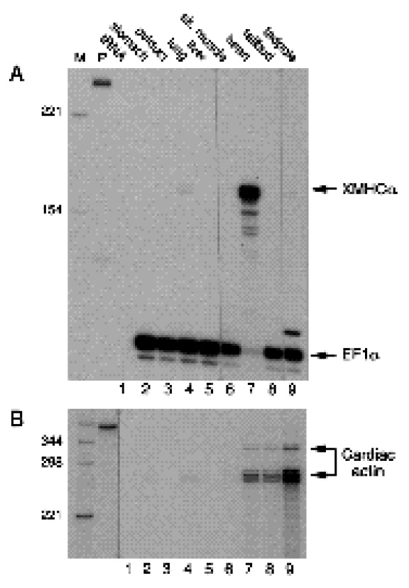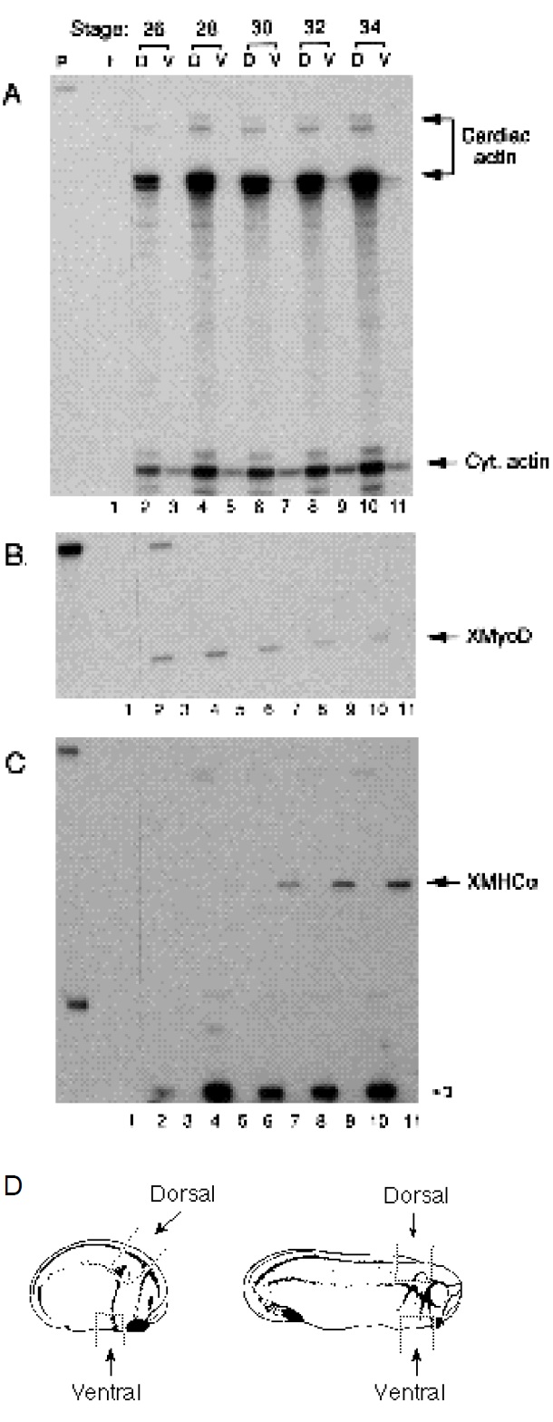 presence of cardiac actin (A), XMyoD (B) and XMHCa