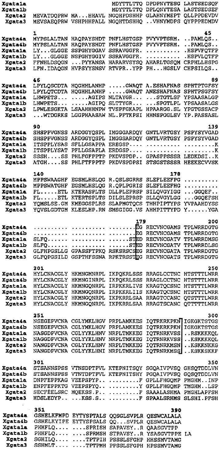 Fig. 1. The amino acid sequence of Xenopus GATA-4 as