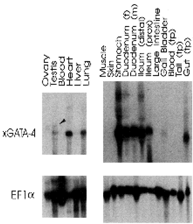Fig. 3. The GATA-4 gene is transcribed in heart, gonads and