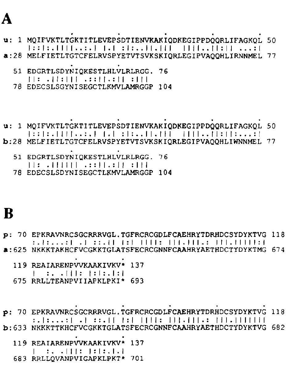 Xenopus Ub. Solid vertical lines indicate exact aa matches; single and
