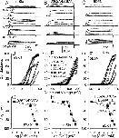 Figure 1. . Cd2+ confers high affinity regulatory effects only through the D362/D367 site. (A–C) Traces show currents from inside-out patches for Slo1 and indicated mutants with cytosolic [Cd2+]i as shown in A. Voltage steps were from −80 mV through to +160 mV in 20-mV increments following 40 ms at −180 mV, with tail currents at −120 mV. (D-F) G–V curves were generated over [Cd2+]i from 0 to 300 μM for Slo1 (n = 6), D362A/D367A (n = 7) and 5D5N (n = 6). Open diamonds, 0 μM; filled diamonds, 10 μM; open circles, 30 μM; filled circles, 100 μM; open triangles, 300 μM. Current amplitude is markedly reduced when [Cd2+]i is >300 μM (not depicted). (G) Activation ΔVh is plotted versus [Cd2+]i for wild-type Slo1 (n = 6) and for the construct with the D362A/D367A mutation (n = 7). (H) ΔVh is plotted versus [Cd2+] for Slo1 versus 5D5N (n = 6). (I) ΔVh is plotted versus [Cd2+] for Slo1 versus E399A (n = 7) and the combined mutation of D362A/D367A + E399A (n = 8). |