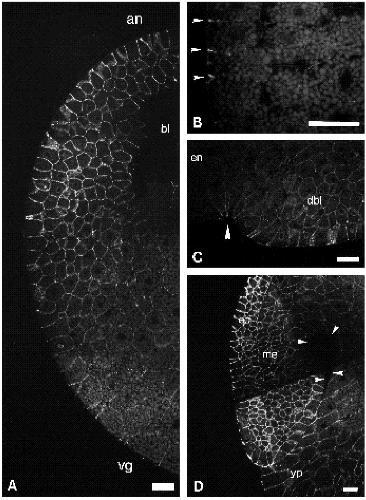 vegetal pole region; Bars: 50 um. |