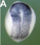 shh (sonic hedgehog) expression, a marker for notochord, in a X. laevis embyro, NF stage 17/18 (mid-neurula stage), |