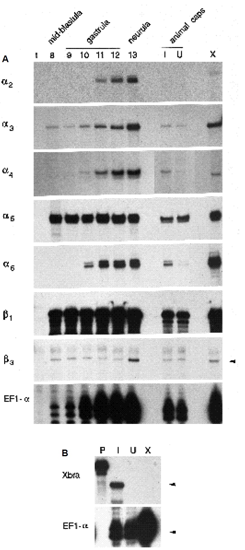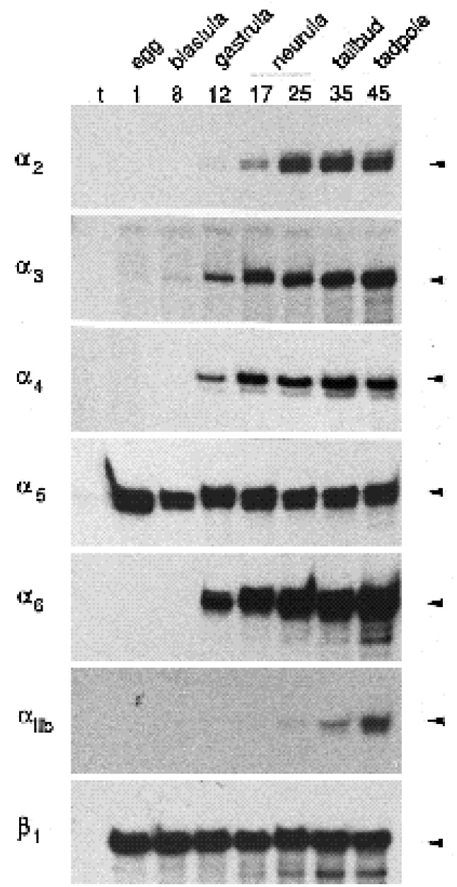 Fig. 4. Integrin a subunit mRNA expression during gastrulation,
