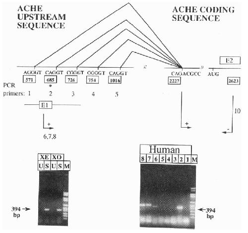 FIG. 1. ACHE 5' upstream sequence. DNA sequencing was
