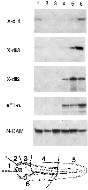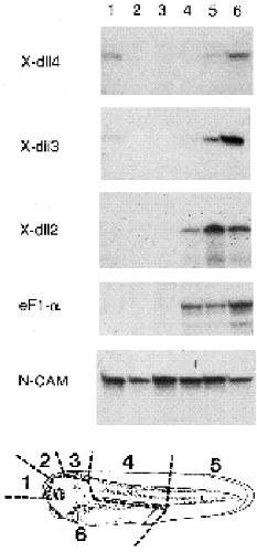 expression of X-dll3 (N) and X-dll4 (S) in the posterior