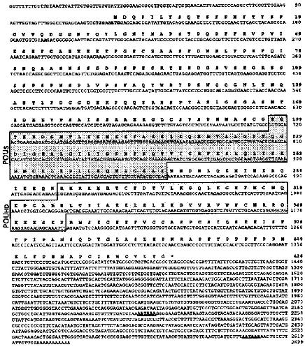 otherwise fully conserved between class 1-V POU-domain proteins. These seven amino acids are indicated in bold. The methionine residue in the