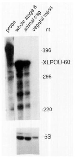 of the XLPOU-60 transcript in the stage VI oocyte. Lanes are as labelled.