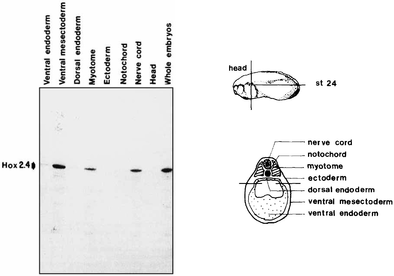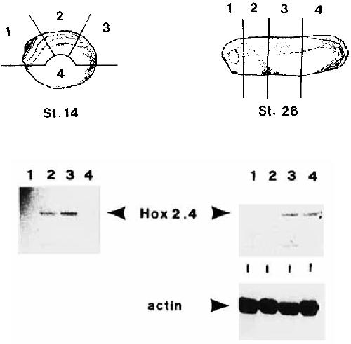 Fig. 6. Hox2.4 expression requires mesoderm induction. The top part