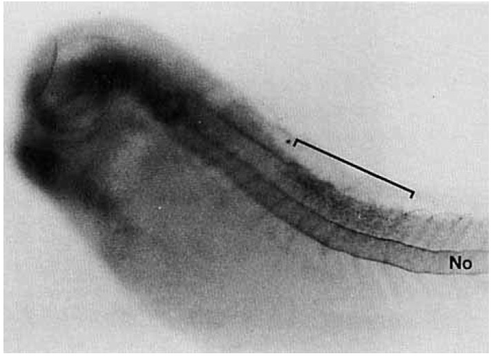 of the notochord (No) occurs on the surface and is artifactual.