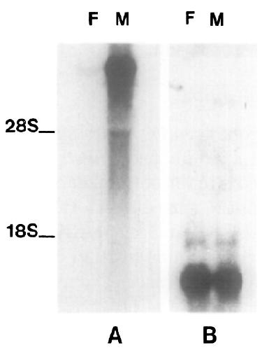 each lane contained ssmilar amounts of RNA (5 pg). Blots A and B