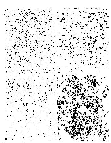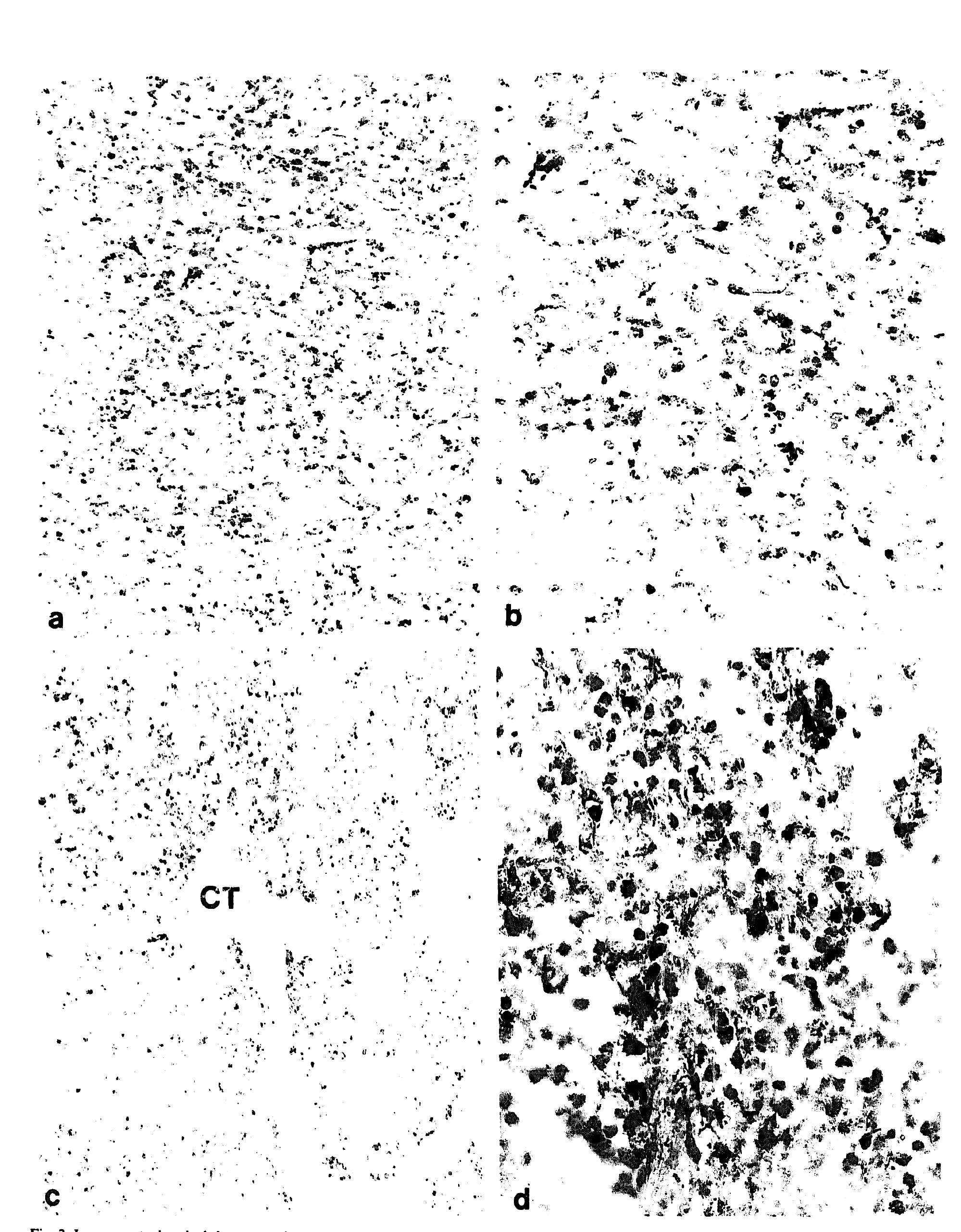 immunoreaction varies markedly from cell to cell. CT, septa of connective tissue. For further details see Materials and l~,~ethods. Magnification: a